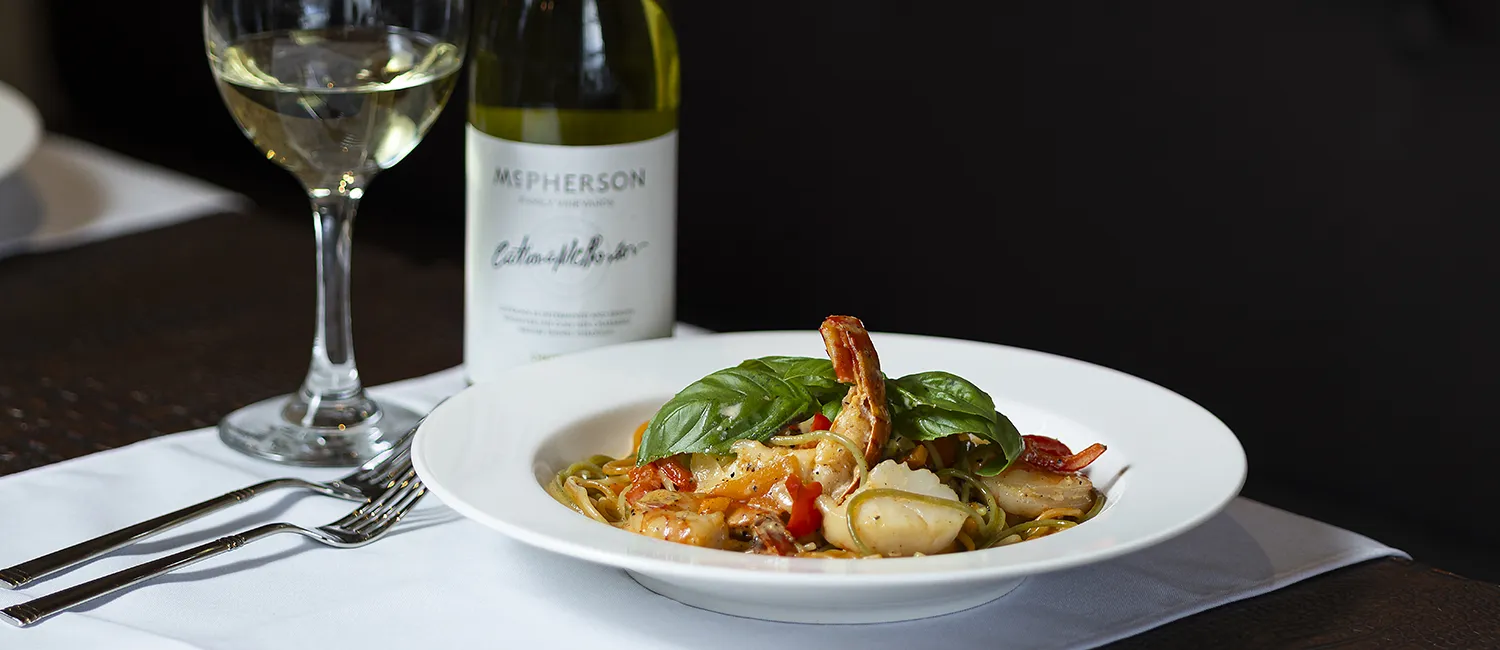 homemade tomato or lemon cream sauce, garlic, basil, onion, mixed herbs and white wine